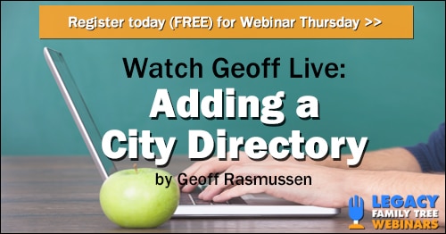 - Register at www.FamilyTreeWebinars.com today. It's free!