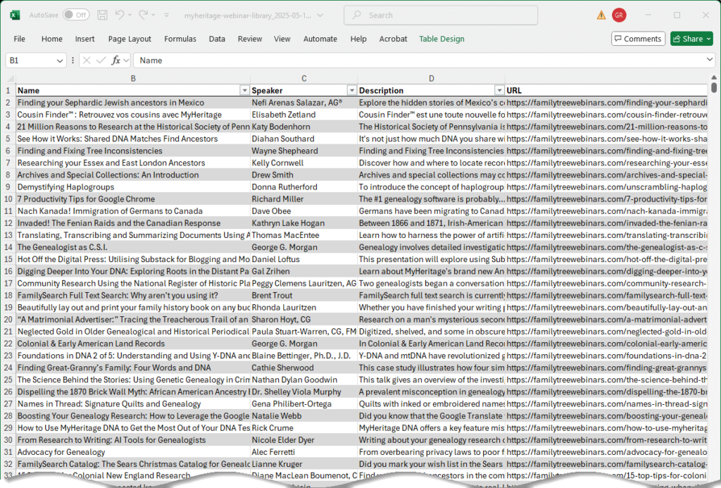 You might be wondering, “What can I do with a CSV file of webinar titles?” Here are just a few fantastic ways this new feature can enhance your genealogy journey: