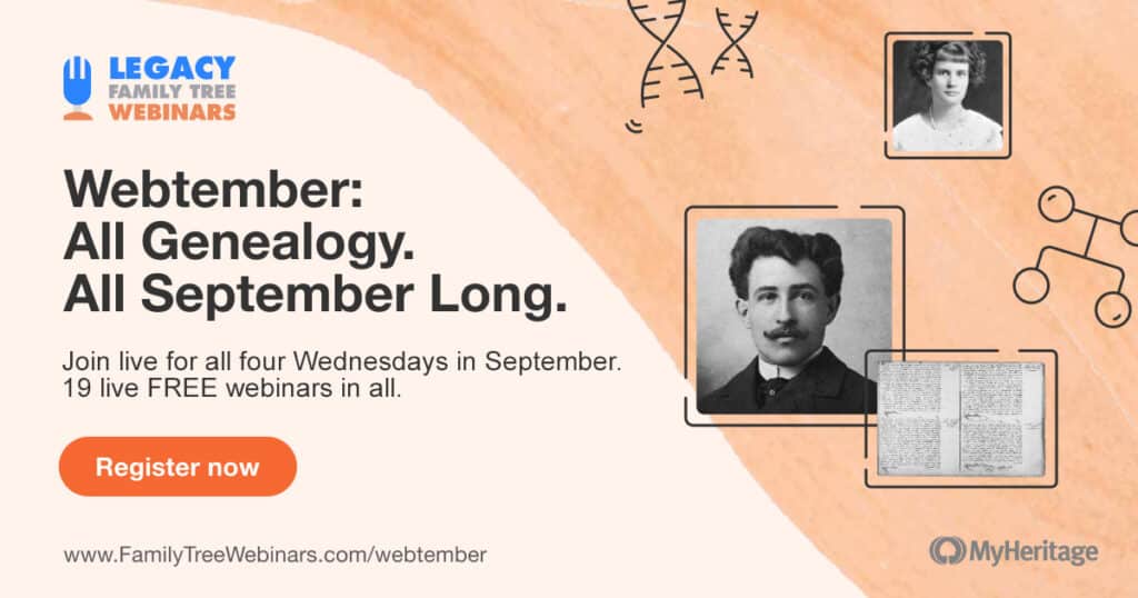 Webtember 2025: All Genealogy. All September Long. Sign up today (free).